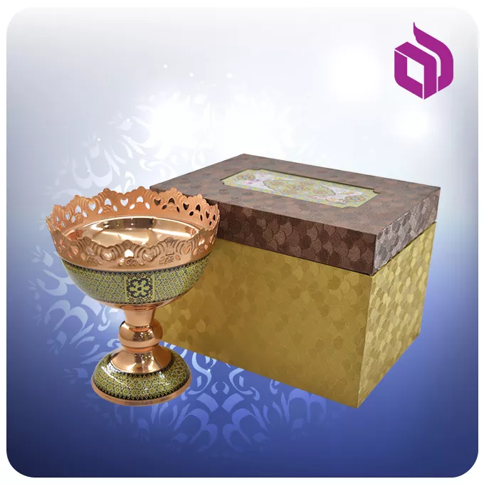 توضیحات آجیل خوری مس و خاتم کاری ۱۶سانت با جعبه MDF گالینگور