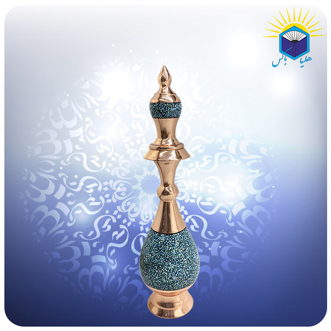 صنايع دستی اصفهان در طول قرن‌های متمادی به‌عنوان نماينده هنر اصيل قوم ايرانی در جهان معرفی شده‌اند و یکی از بهترین سوغاتی‌های این شهر به شمار می‌آیند. در اصفهان فیروزه کوبی روی جواهرات و همچنین در ظروفی مانند گلدان، سنبلدان، شمعدان، قندان، شکلات خوری، شیرینی خوری، میوه خوری، آجیل خوری، سنگاب، شربت خوری، تنگ، آینه، کشکول و غیره انجام می‌شود. رنگ ظرف‌های فیروزه کوبی عموما آبی و سبز است. در هنر فیروزه کوبی ظرف‌ها، زیورآلات و اشیای تزیینی (از جنس مس، برنج، نقره یا برنز) با استفاده از سنگ‌های فیروزه در قطعات بسیار کوچک آراسته می‌شوند. برای این کار قطعات ریز فیروزه را با استفاده از ابزار و وسایل فیروزه کاری روی ظروف مسی قرار می‌دهند و با استفاده از چسب فیروزه کوبی یا لاک گردویی آن‌ها را محکم می‌کنند. ارزش هنری کار زمانی بیشتر است که فاصله بین قطعات فیروزه کمتر باشد و رنگ چسب در کار مشخص نشود. این تنگ صراحی مس و فیروزه کوبه ۲۸ سانت به وزن ۳۰۰ گرم میباشد.