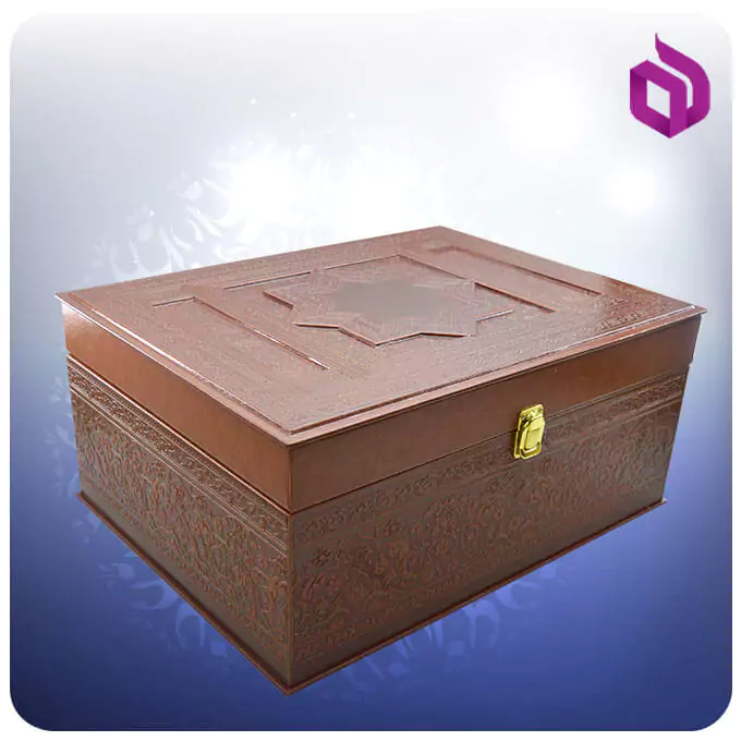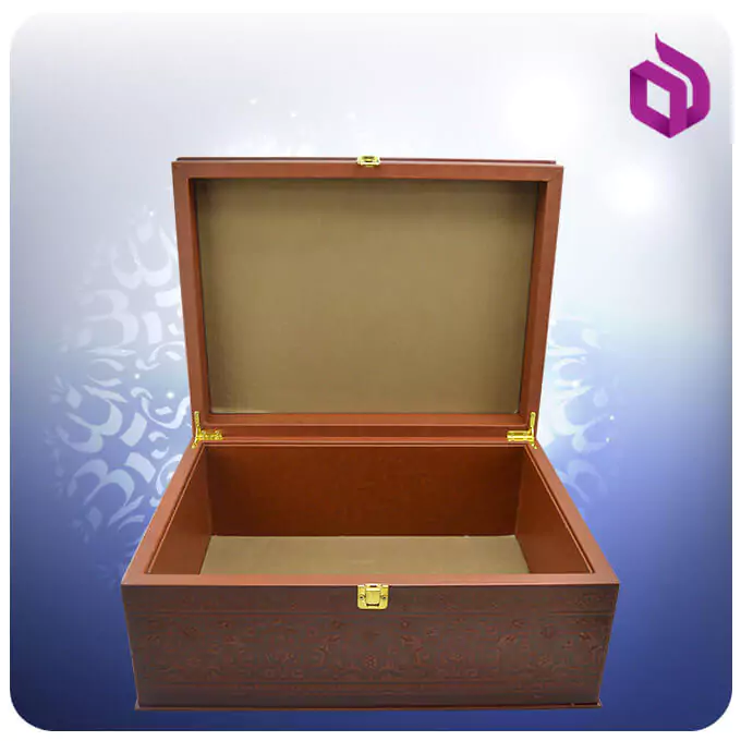 این جعبه هدیه از جنس MDF با روکش چرمی است که روکش چرمیه این جعبه کادویی، آن را در مقایسه با جعبه های دیگر در نوع خود منحصر بفرد نموده است. روکش چرمی آن موجب شده است که دیگر شاهد یکنواختی سطح چوبی و پلاستیکی ای که در اکثر جعبه ها مشاهده میشود، در این جعبه هدیه خاص و زیبا نباشیم. جعبه کادویی چرم مناسب برای قرار دادن انواع هدیه میباشد.