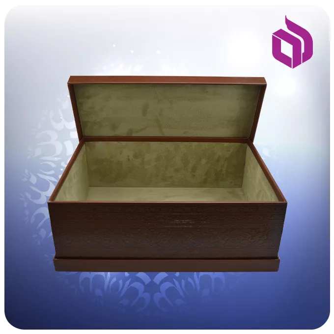 این جعبه هدیه از جنس MDF با روکش چرمی است که روکش چرمی این جعبه کادویی، آن را در مقایسه با جعبه های دیگر در نوع خود منحصر بفرد نموده است. روکش چرمی آن موجب شده است که دیگر شاهد یکنواختی سطح چوبی و پلاستیکی ای که در اکثر جعبه ها مشاهده میشود، در این جعبه هدیه خاص و زیبا نباشیم. ضمن اینکه این روکش، جعبه را بسیار لوکس و لاکچری نموده است. هر کادویی را می توان در این باکس چرمی کادو قرار داد.