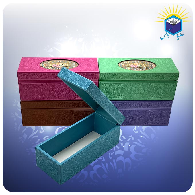 این جعبه هدیه از جنس MDF با روکش چرم است. رنگهای متنوع این جعبه کادویی، آن را در مقایسه با جعبه های دیگر در نوع خود منحصر بفرد نموده است. روکش چرمی آن موجب شده است که دیگر شاهد یکنواختی سطح چوبی و پلاستیکی ای که در اکثر جعبه ها مشاهده میشود، در این جعبه هدیه خاص و زیبا نباشیم. ضمن اینکه پلاکهای طلایی آن، جعبه را بسیار لوکس و لاکچری نموده است. هر کادویی را می توان در این جعبه هدیه بسیار زیبا قرار داد.
