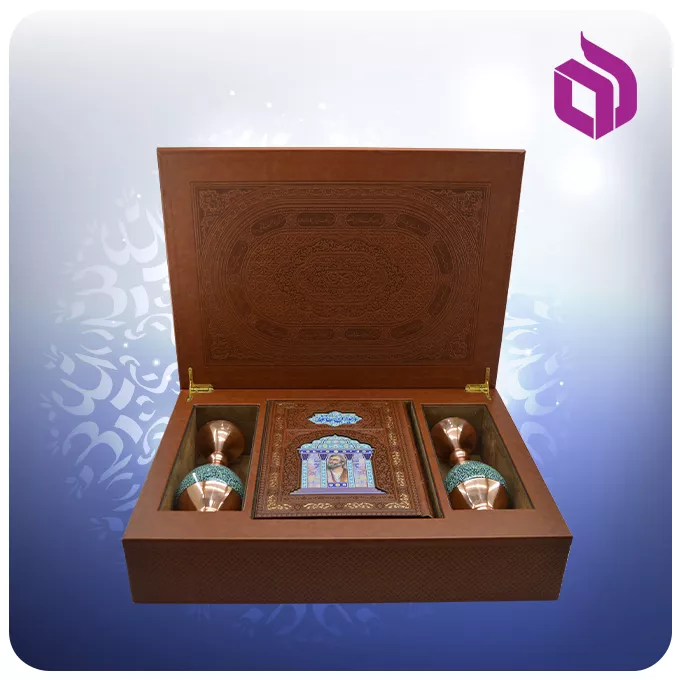 این مجموعه در کاوری مقاوم و زیبا (جعبه لپتاپی) ارائه میشود و بهراحتی در کتابخانههای مجلل یا دکوراسیونهای سنتی و مدرن جای میگیرد. اقلام همراه این ست شامل دو گلدان فیروزهکوبی خوشساخت و یک ساک هدیه ترمه باکیفیت است که ارزش هدیه را کاملتر میکند. به همین دلیل، این مجموعه برای هدایای سازمانی، یادبودهای مهم و تبریکهای ویژه نیز کاربرد دارد. برای حفظ دوام و زیبایی محصول، بهتر است آن را دور از رطوبت مستقیم و نور شدید نگهداری کنید تا چرم، فیروزهکوبی و چاپ کتاب در طول زمان کیفیت خود را حفظ کنند.
