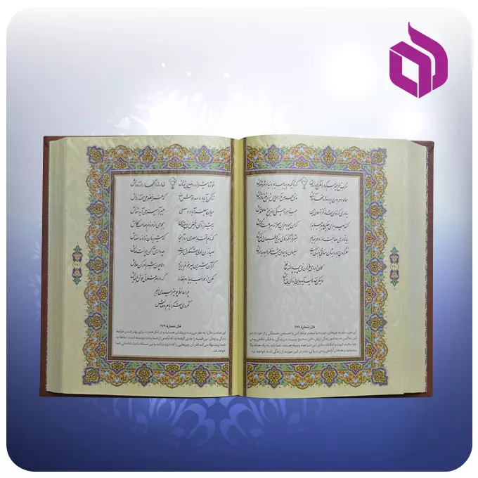 جلد این نسخه از چرم مرغوب تهیه شده است و قطع وزیری آن با ابعاد ۱۷ × ۲۵ سانتیمتر، ظاهر رسمیتری به کتاب میدهد. استفاده از کاغذ عطری، تجربه مطالعه را دلپذیرتر میکند و خواندن اشعار حافظ را لذتبخشتر میسازد. خطاطی این اثر با خط مصطفی اشرفی انجام شده و چاپ چهاررنگ صفحات، در کنار تذهیب و نگارگریهای ظریف، غنای بصری کتاب را افزایش داده است. این دیوان بر اساس نسخه تصحیحشده و معتبر علامه محمد قزوینی چاپ شده است تا اعتبار ادبی و علمی آن حفظ شود.
