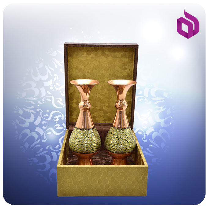این ست شامل دو گلدان صراحی ۲۰ سانتیمتری است که از ترکیب مس و هنر خاتمکاری ساخته شدهاند. این محصول، با فرم کلاسیک و نقوش ظریف، انتخابی ممتاز برای دکوراسیون و هدیه محسوب میشود.