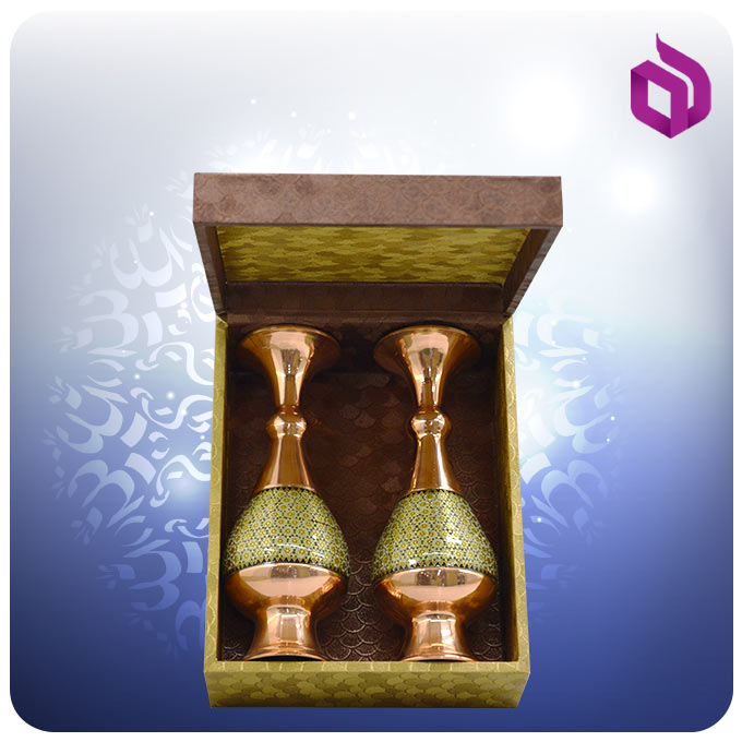 این ست دو گلدان صراحی مس و خاتم کاری ۲۰ سانت دارای جعبه هدیه از جنس ام دی اف و گالینگور به وزن ۱.۱۵ کیلو گرم است. ابعاد داخلی جعبه ۲۰.۵ * ۱۶ * ۷.۵ میباشد.