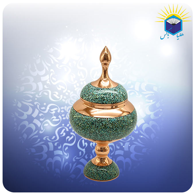 این شکلات‌خوری مس و فیروزه‌کوب آقاجانی با ارتفاع ۲۸ سانتی‌متر و وزن حدود ۵۵۰ گرم ساخته شده و می‌تواند انتخابی اصیل برای دکوراسیون یا هدیه‌های ارزشمند باشد.