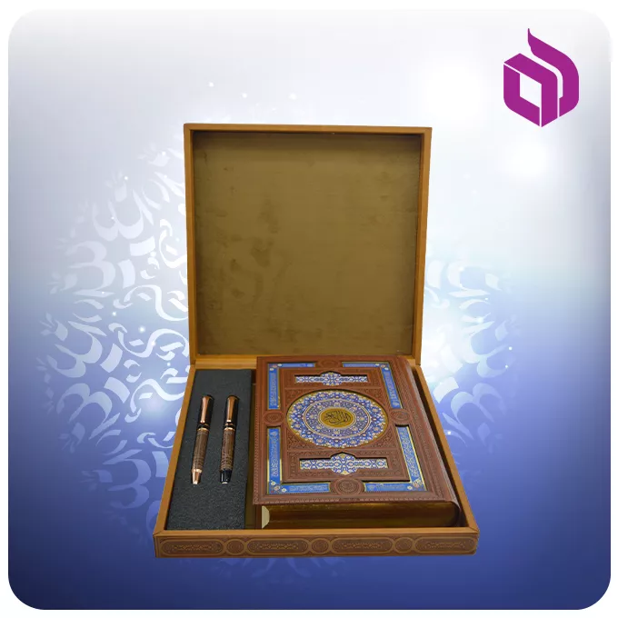 ویژگی متمایز این مصحف، استفاده از کاغذ عطری باکیفیت است که تجربهای چندحسی از تلاوت را ارائه میدهد. متن شریف قرآن با خط زیبای عثمان طه و چاپ نفیس چهار رنگ، وضوح و زیبایی بصری بینظیری دارد. جلد کتاب از جنس مرغوب چرم، دوام و زیبایی ظاهری آن را تضمین میکند و حسی از تجمل را به مخاطب القا مینماید. این مجموعه فاخر تنها به کتاب محدود نمیشود؛ یک ست شامل خودکار و رواننویس طرحدار نفیس برای نگارش یادداشتهای شخصی یا امضا در کنار مصحف قرار داده شده است. همهی این اقلام با دقت درون یک ساک هدیه از جنس ترمه اصیل ایرانی، که خود نمادی از هنر و صنایع دستی سنتی است، بستهبندی شدهاند تا ارزش معنوی و مادی این هدیه را دوچندان سازند.