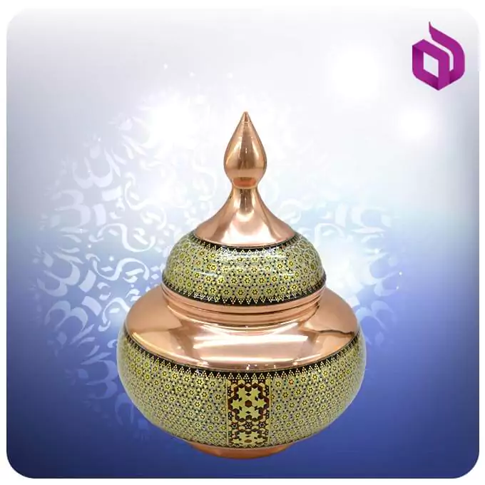 هنر صنایع دستی اصفهان همواره سفیر فرهنگ غنی ایران در سراسر جهان بوده و بهترین یادگاری از شهر تاریخی اصفهان محسوب میشود. در میان این آثار، ترکیب هنر مسگری و خاتمسازی خلق شده است که ظاهری متفاوت و بسیار جذاب به ظروف میبخشد. در این فرآیند ابتدا زیرساخت فلزی توسط استادکاران مسگری شکل میگیرد و سپس با استفاده از تکههای ظریف چوب و استخوان، نقوش هندسی پیچیده و دقیقی روی سطح ظرف اجرا میشود. این قندان مس و خاتمکاری شالدار بزرگ با قطر ۲۷ سانتیمتر و وزن ۹۰۰ گرم، اثر فاخری است که با ظرافت و دقت بالایی ساخته شده و میتواند بهعنوان یک آیتم پذیرایی مجلل و چشمنواز در منزل شما مورد استفاده قرار گیرد.