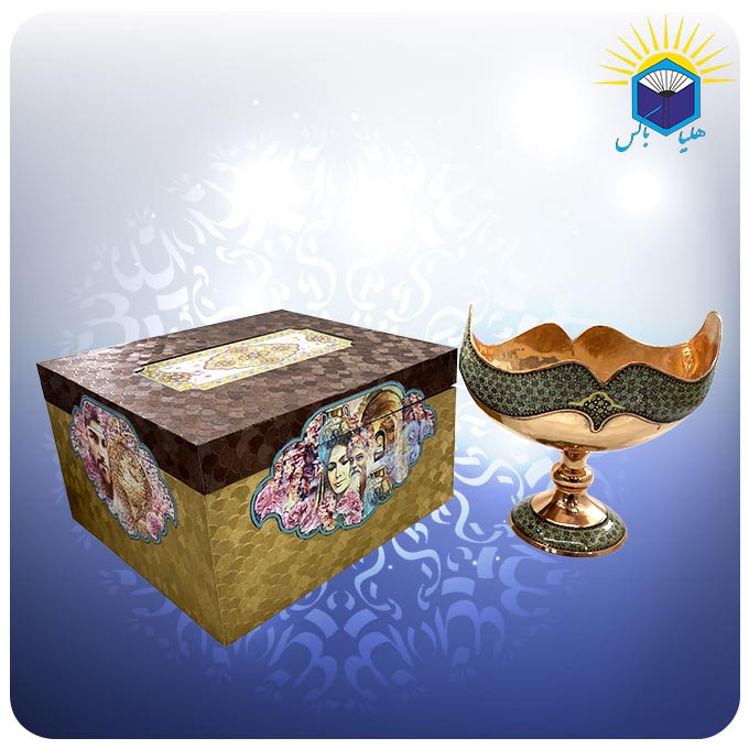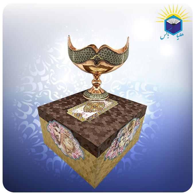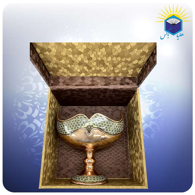صنايع دستی اصفهان در طول قرنهای متمادی بهعنوان نماينده هنر اصيل قوم ايرانی در جهان معرفی شدهاند و یکی از بهترین سوغاتیهای این شهر به شمار میآیند. مس و خاتم یکی از صنایع دستی نسبتا جدید اصفهان است که از تلفیق هنر مسگری و خاتم سازی به وجود آمده است. در خاتم کاری از چوب و استخوان استفاده میشود و تمام سطح جسم موردنظر را با نقوش هندسی پر میکنند. برای خاتم کاری روی مس در ابتدا ظرف مسی موردنظر توسط استاد مسگر آماده شده و سپس بخشهایی از آن با قطعات خاتم کاری پوشانده میشود. این کشکول مس و خاتم کاری ساده ۲۲ سانت دارای جعبه هدیه از جنس ام دی اف و گالینگور به وزن ۱.۹۱ کیلوگرم است. ابعاد داخلی جعبه ۲۵ * ۲۴.۵ * ۱۴.۵ میباشد.