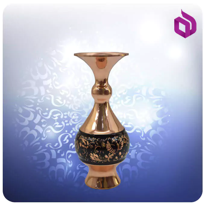هنر الماس تراش در این گلدان با ایجاد تراشهای ظریف، نقوشی درخشان بر روی سطح مسی ایجاد کرده است. فرم تنه گرد با بدنه پهن خود، سطح مناسبی را برای نمایش این هنر فراهم میکند. کل سطح محصول با یک لایه محافظ پوشانده شده تا از تغییر رنگ مس جلوگیری شود.