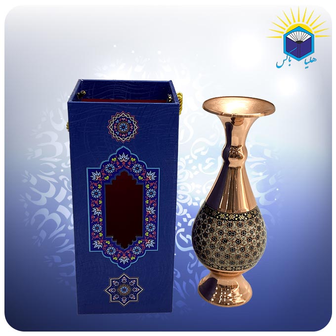 این محصول یک گلدان ۲۰ سانتیمتری با فرم اصیل صراحی است که هنر خاتمکاری بر روی بدنه مسی آن اجرا شده است. وجه تمایز این کالا، بستهبندی آن به شکل یک ساک دستی شیک و مدرن به رنگ آبی است که شیوه ارائه این اثر هنری سنتی را متفاوت کرده و آن را به گزینهای مناسب برای هدیه دادن تبدیل میکند.