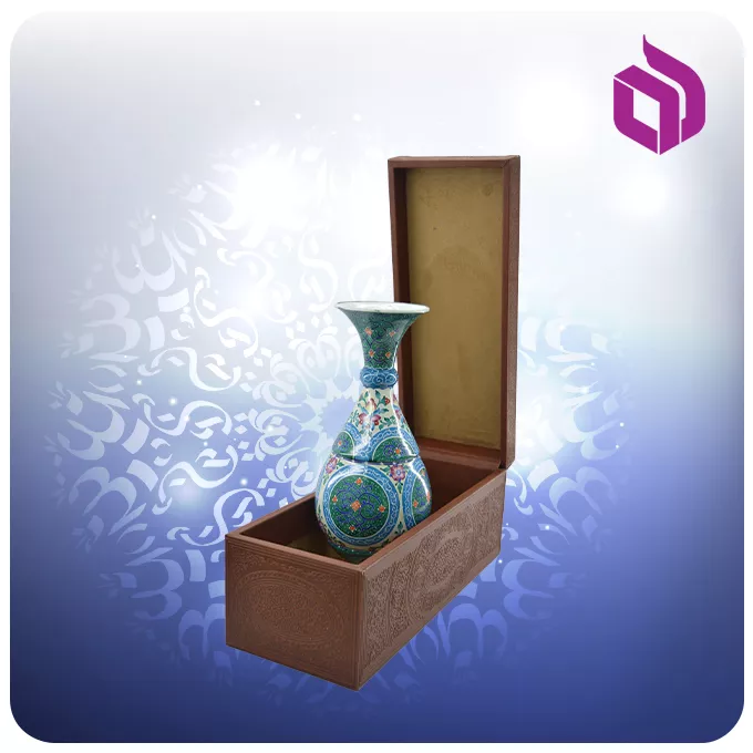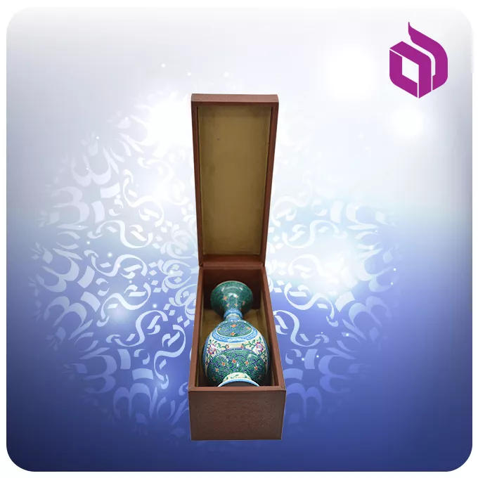این گلدان زیبا، با طراحی سنتی صراحی و ارتفاع ۲۵ سانتیمتر، تجلی هنر میناکاری بر بستری از مس مرغوب است. جزئیات دقیق و رنگهای زنده مینا، اثری دلنشین و چشمنواز را پدید آوردهاند. هر گلدان به همراه یک جعبه لوکس و مقاوم با طراحی لپتاپی ارائه میشود که از جنس چرم با کیفیت ساخته شده است. این جعبه نفیس، نه تنها محافظی ایدهآل برای گلدان است، بلکه جلوهای مضاعف به آن میبخشد و گلدان را به یک مجموعه هدیه کامل و فاخر تبدیل میکند. ابعاد کلی این اثر هنری ۲۵ × ۷ سانتیمتر بوده و وزن آن در حدود ۰.۳۹۶ کیلوگرم است که نشاندهنده ظرافت و دقت در ساخت آن است.